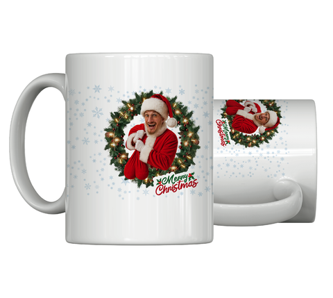 Die offizielle Christmas Kranzl Tasse von ItsPatLive mit mehrfarbigem Sublimationsdruck.