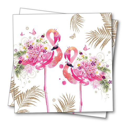 Bedruckte 3-lagige Papierserviette mit Blumenflamingos