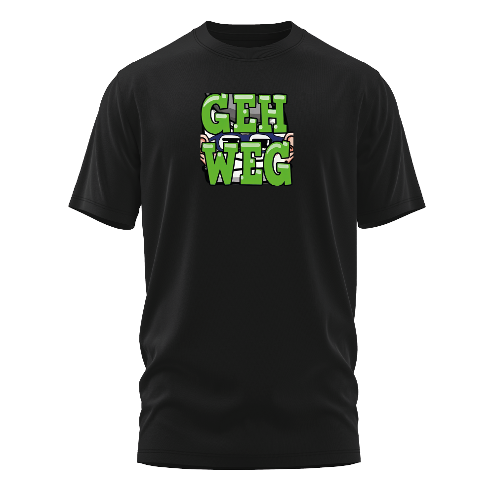 Das offizielle Geh weg T-Shirt von ZuckerfuerdieOhren mit mehrfarbigem DTF-Druck vorne. Die Größen entnehmen Sie bitte der Tabelle im weiteren Produktbild. Die Textilien werden erst nach Bestellung individuell angefertigt.