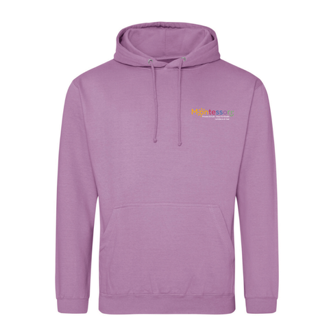 Der offizielle Logo Hoodie der Montessori Privatschule mit vollfarbigem Siebdruck vorne und hinten.