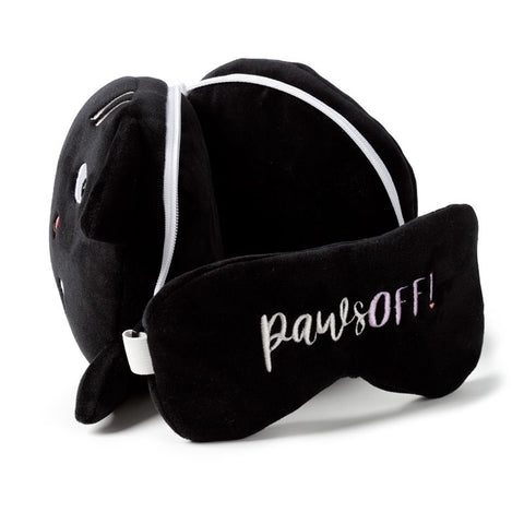 Die plüschige, entspannende Augenmaske mit Reisekissen kombiniert.