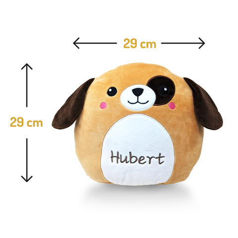 Das weiche Hunde Kuschelkissen mit personalisiertem Stick.