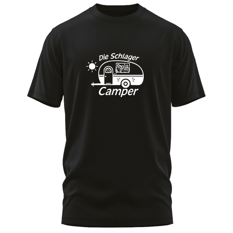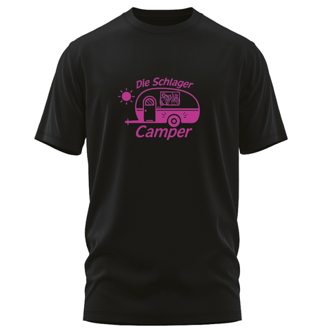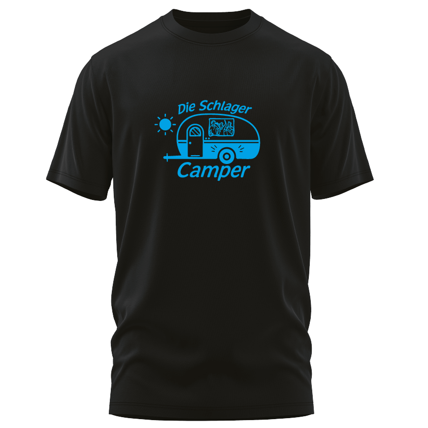 Das offizielle Logo T-Shirt Schwarz von Die Schlager Camper mit merhfarbigem DTF-Druck.