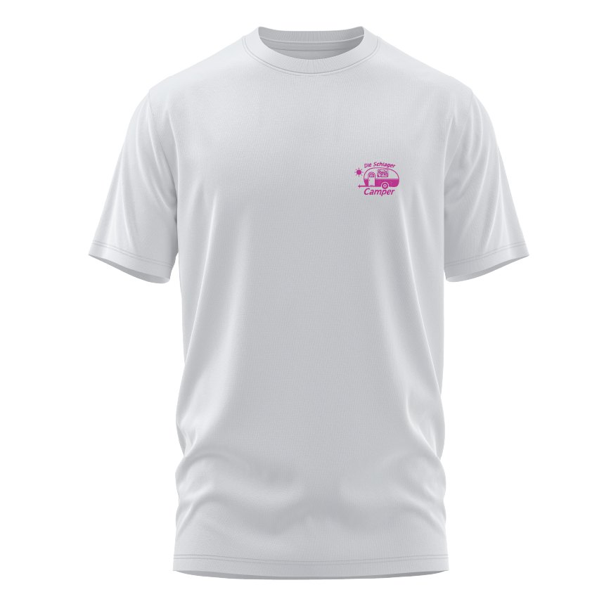 Das offizielle Label T-Shirt Schwarz von Die Schlager Camper mit merhfarbigem DTF-Druck.