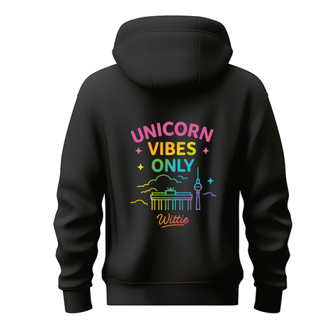 Der offizielle Label Hoodie von Café Vaganza (Wittie-BLN) mit mehrfarbigem DTF-Druck vorne und hinten. Die Größen entnehmen Sie bitte der Tabelle im weiteren Produktbild. Die Textilien werden erst nach Bestellung individuell angefertigt.