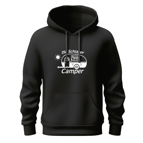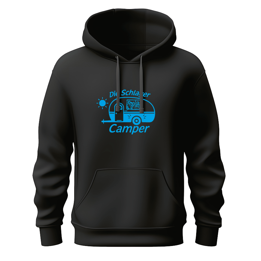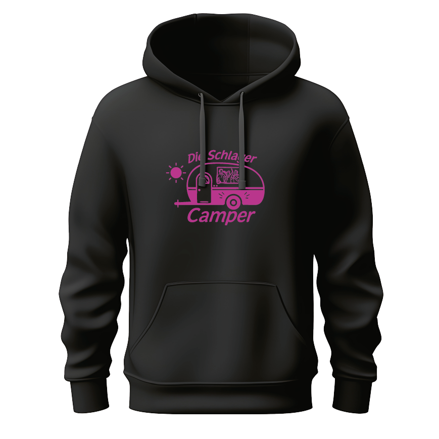 Der offizielle Logo Hoodie Schwarz von Die Schlager Camper mit merhfarbigem DTF-Druck. Die Größen entnehmen Sie bitte der Tabelle im weiteren Produktbild. Die Textilien werden erst nach Bestellung individuell angefertigt.