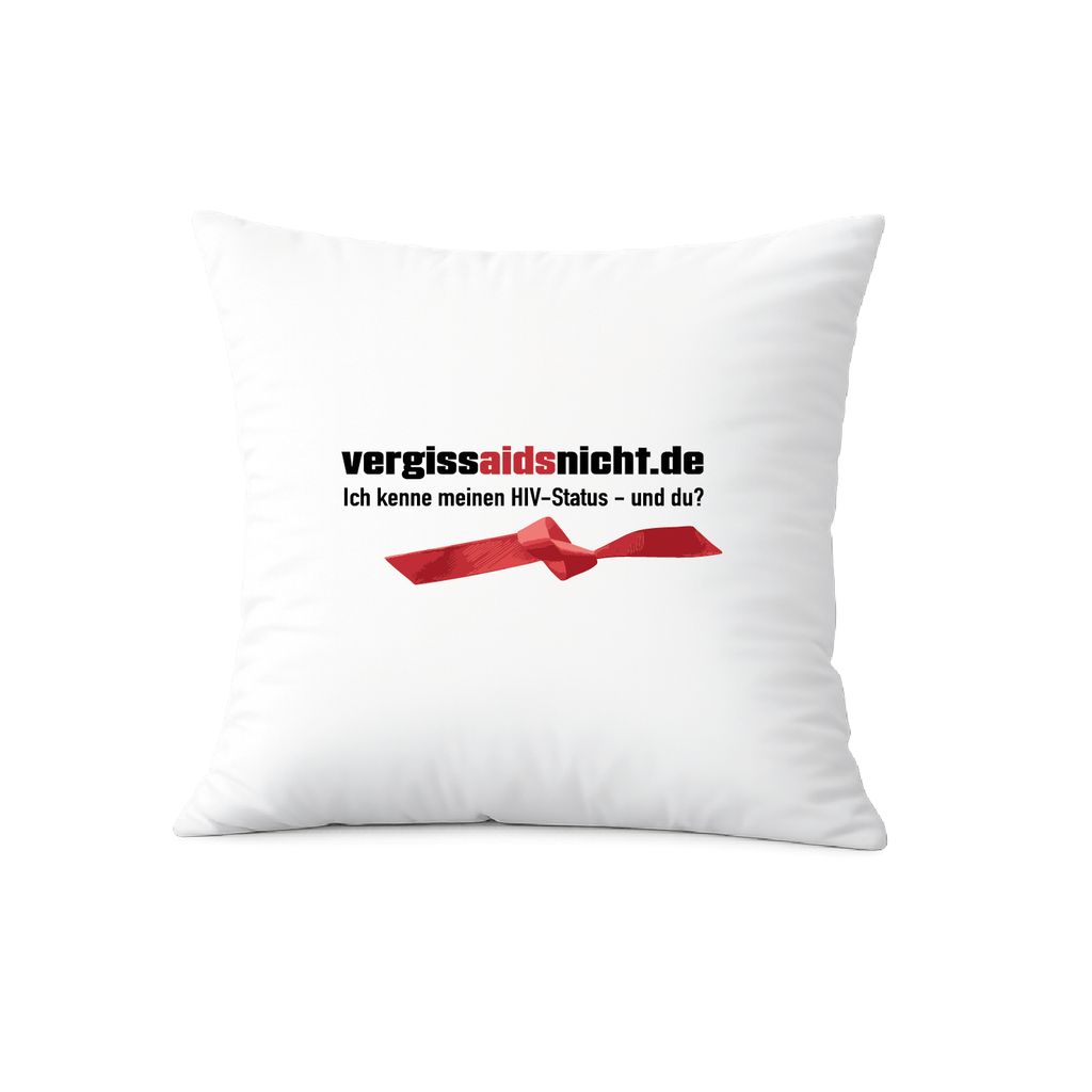 Das offizielle Logo Kissen von vergissaidsnicht.de mit DTF-Druck vorne.