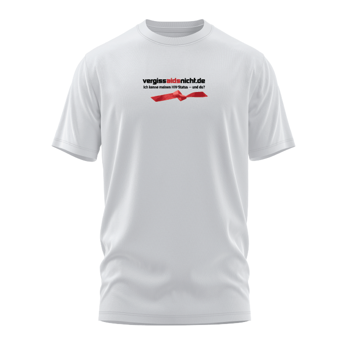 Das offizielle Logo T-Shirt Weiß von vergissaidsnicht.de mit mehrfarbigem DTF-Druck vorne.