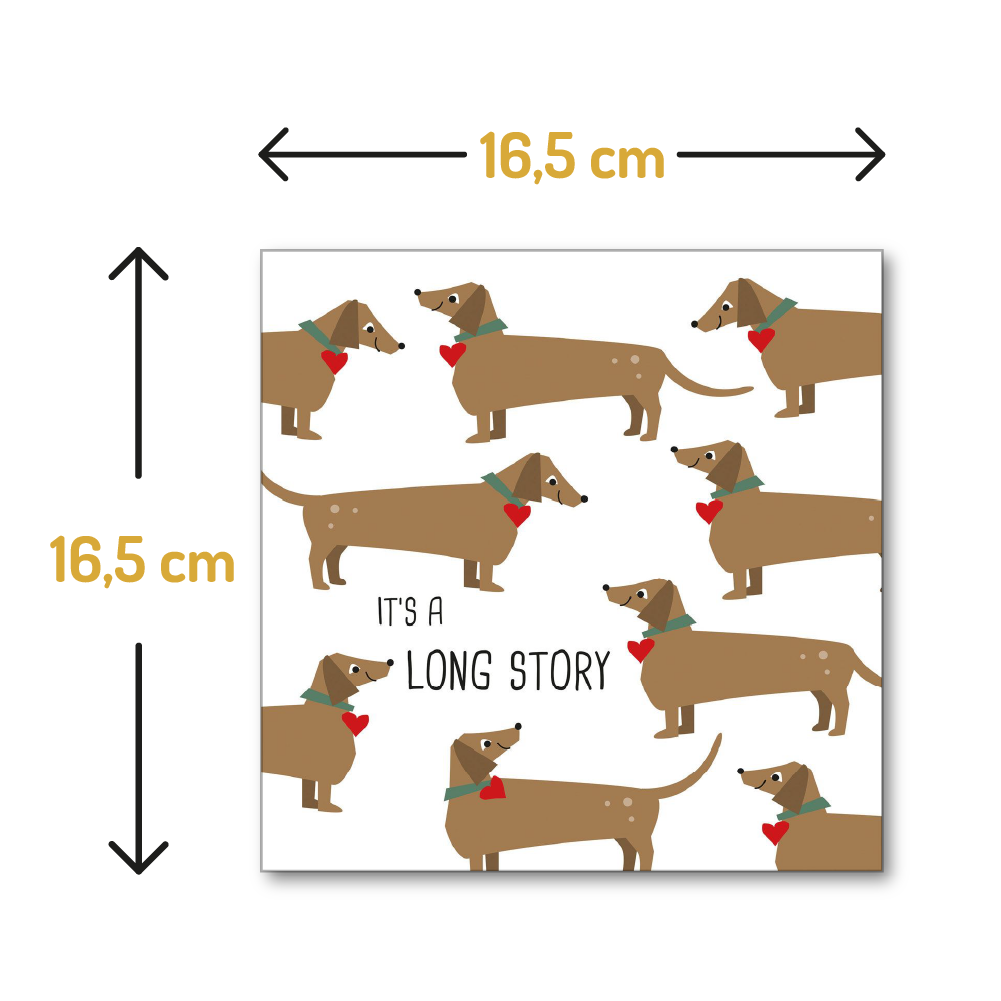 Bedruckte 3-lagige Papierserviette mit "IT'S A LONG STORY" und Dackel Aufdruck