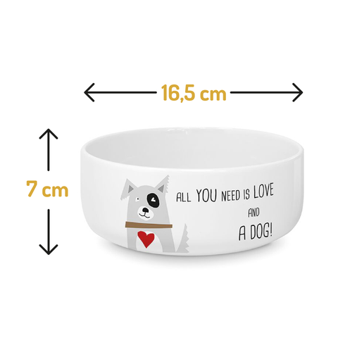 Das passende Set für Hundeliebhaber, bestehend aus einer Futterschale für den Hund und einer Tasse für das Herrchen. Maße für die einzelnen Artikel sind in weiteren Produktbildern enthalten.