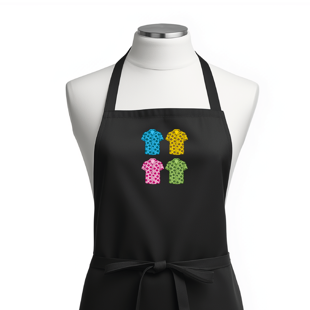 Die offizielle Popart Schürze von Wallace mit mehrfarbigem DTF-Druck.