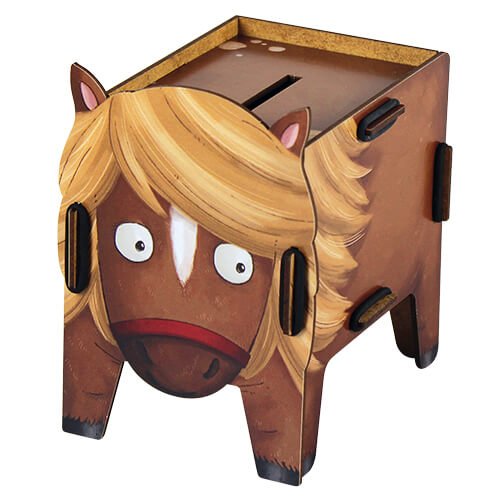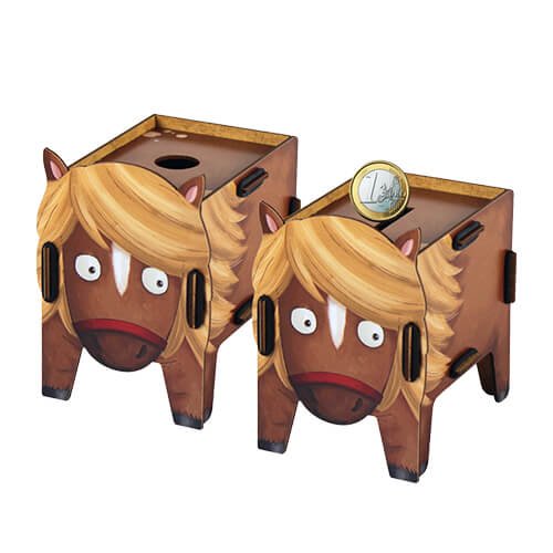 Die Sparbüchse mit zwei austauschbaren Deckeln und unterschiedlichen Öffnungen für jeden Pferdefreund.