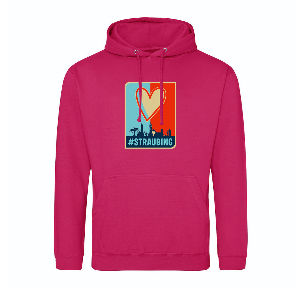 Der offizielle Straubing Silhouette Hoodie in hochwertiger 300 g/m² Heavy Qualität mit mehrfarbigem DTF-Druck vorne. Die Größen entnehmen Sie bitte der Tabelle im weiteren Produktbild. Die Textilien werden erst nach Bestellung individuell angefertigt.