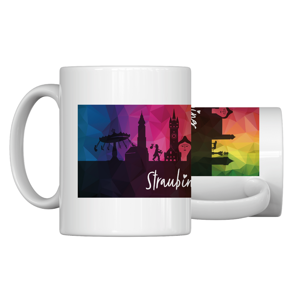 Die offizielle Straubing Silhuoette Tasse mit mehrfarbigem Sublimationsdruck.