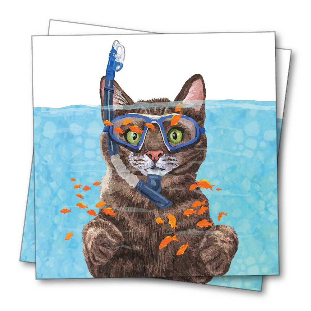 Bedruckte 3-lagige Papierserviette mit Taucherkatze