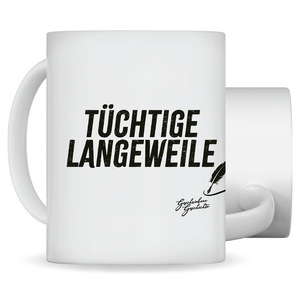 Die Tüchtige Langeweile Tasse in Weiß von Geschriebene Geschichte.