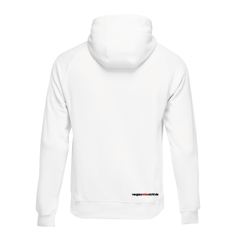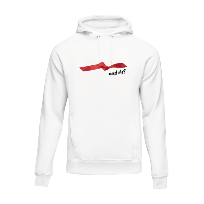 Der offizielle "Und du?" Hoodie Weiß von vergissaidsnicht.de mit mehrfarbigem DTF-Druck vorne. Die Größen entnehmen Sie bitte der Tabelle im weiteren Produktbild. Die Textilien werden erst nach Bestellung individuell angefertigt.