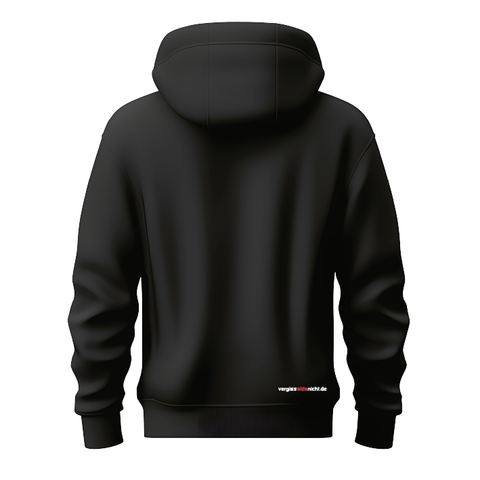 Der offizielle "Und du?" Hoodie Schwarz von vergissaidsnicht.de mit mehrfarbigem DTF-Druck vorne. Die Größen entnehmen Sie bitte der Tabelle im weiteren Produktbild. Die Textilien werden erst nach Bestellung individuell angefertigt.