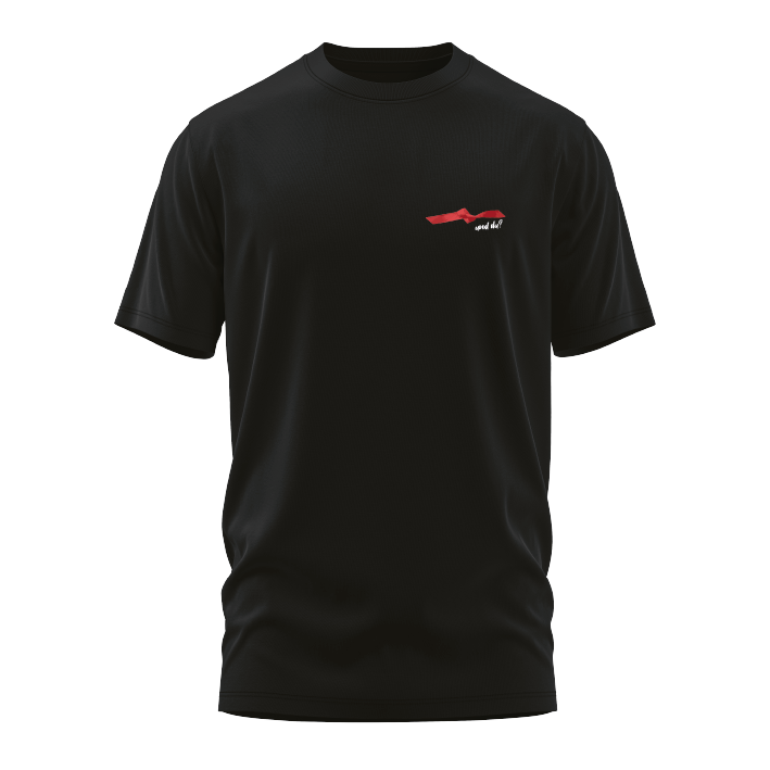 Das offizielle "Und du?" Small T-Shirt Schwarz von vergissaidsnicht.de mit mehrfarbigem DTF-Druck vorne.