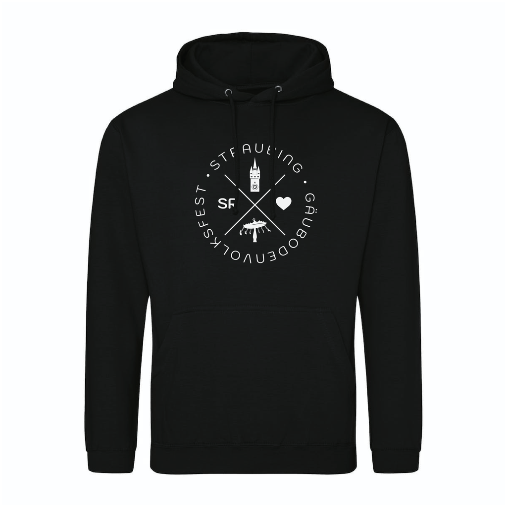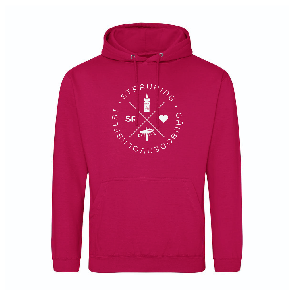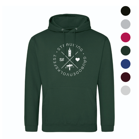 Der offizielle Gäubodenvolksfest Hoodie in hochwertiger 300 g/m² Heavy Qualität mit mehrfarbigem DTF-Druck vorne. Die Größen entnehmen Sie bitte der Tabelle im weiteren Produktbild. Die Textilien werden erst nach Bestellung individuell angefertigt.