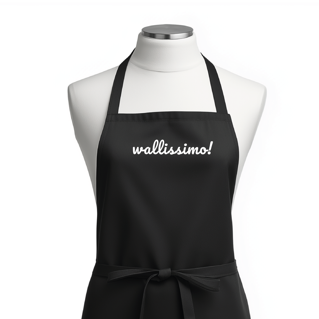 Die offizielle Wallissimo Schürze von Wallace mit mehrfarbigem DTF-Druck.